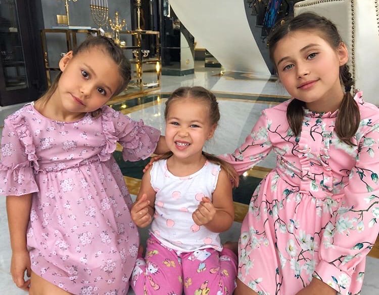 Оксана поделилась снимком, где в кадре запечатлены сразу 3 дочки: Лея (5), Майя (3), Ариела (8). Лея и Ариела одеты в розовые платья с цветочным принтом. А вот Майя не стала утруждать себя скучными переодеваниями и предстала в пижаме. От общей цветовой гаммы не ушла и хорошо.