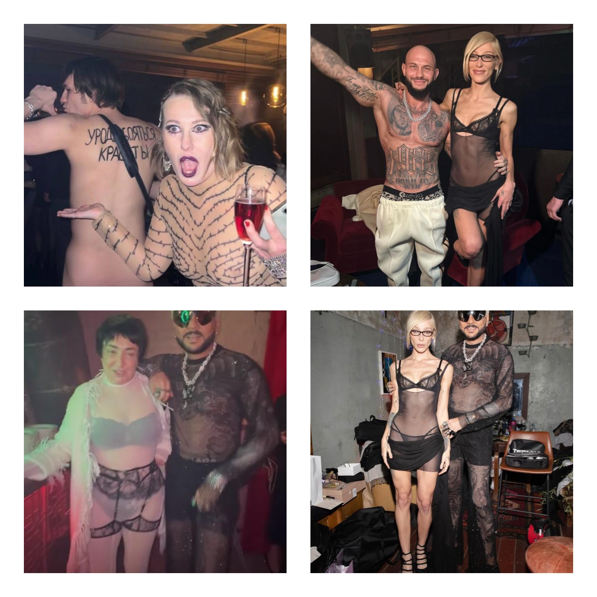 Настя Ивлеева собрала гостей в одном из московских клубов. Дресс-код: быть максимально обнаженными. Сама она нацепила черное кружевное бельишко, прозрачный пеньюарчик, на пятую точку навесила бриллианты. По ее словам, стоят они 23 миллиона. Слишком худая, слишком вызывающая. Поддержать подругу во грехе набилось немало народу: тут и Киркоров в кружевных штанишках, Ольга Орлова, которая в этом году стала мамой во второй раз, примерная жена, тоже вдруг сверкнула обнаженкой, ну Глюкоза давно любит то, что погорячее, поэтому ее присутствию удивляться не приходится. Лолита тоже решила отметиться на странном пати. 60-летняя дива налепила на себя чулки, подвзяки, сверху комбинезон. В общем, зрелище так себе. Смотрите сами. А о том, как отреагировала общественность и что сказали в защиту Собчак и Ивлеева читайте тут.