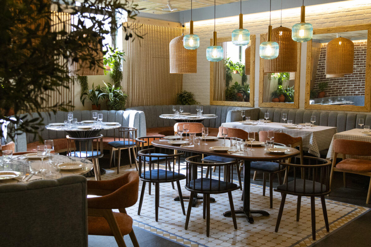Для создания правильного настроения в интерьерах каждого ресторана сохраняется единый стиль. В его основе — морской стиль с элементами греческого интерьера с вниманием к яркими деталям: вазам из цветного стекла и глины, фактурному текстилю, плетеным светильникам, керамике и архивным пленочным кадрам путешественников на стенах.