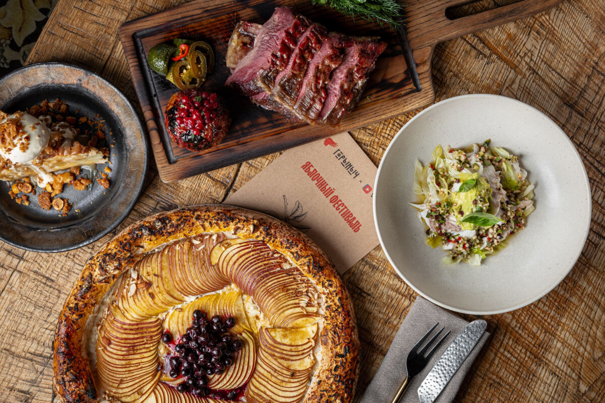 В блюдах, разработанных командой ресторана «Горыныч» для «Яблочного фестиваля», любимый плод предстает в нетривиальных сочетаниях и текстурах.