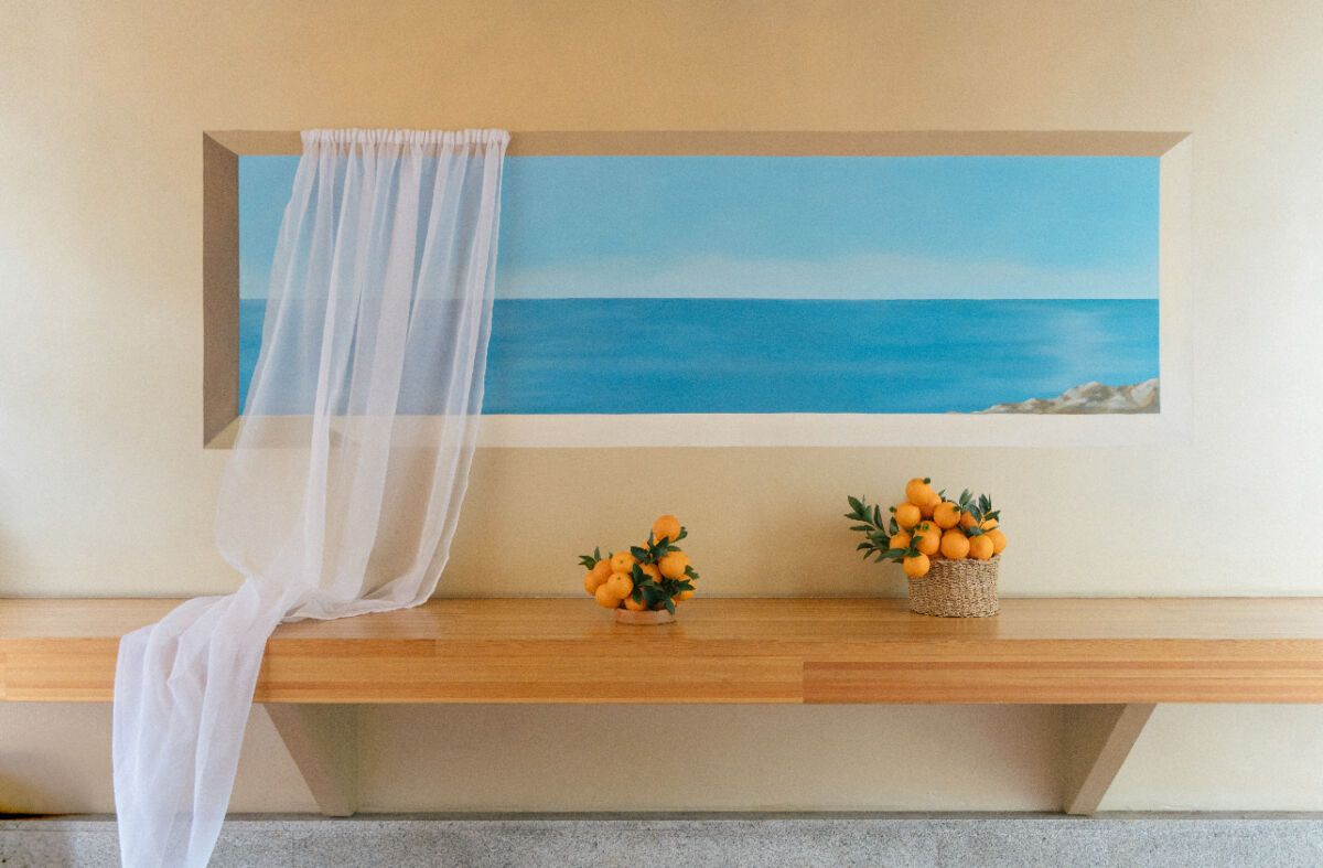 Внутри арки перед верандой установили любопытную инсталляцию: она изображает окно с видом на море. Возле окна — стол, а слева ветер колышет тонкую белую тюль. Можно заказать любимый коктейль, расположиться прямо в арке, надеть наушники и послушать аудиодорожку, которую найдете на сайте Share, наведя на QR-код. По сути получился телепорт в детство с ответами на экзистенциальные вопросы через небольшой рассказ. Создавая инсталляцию, ее авторы хотели побудить нас всех вернуться к истокам: вспомнить свое первое море, услышать его шум, почувствовать теплый ветер на коже и тепло маминых объятий. И картинка, и смысловая нагрузка у каждого будут свои. Но в любом случае — это яркий иммерсивный опыт, а еще хороший шанс замедлиться, выдохнуть и ненадолго вернуться в один летний день из прошлого. Приходите в Share слушать главный саундтрек этого лета!