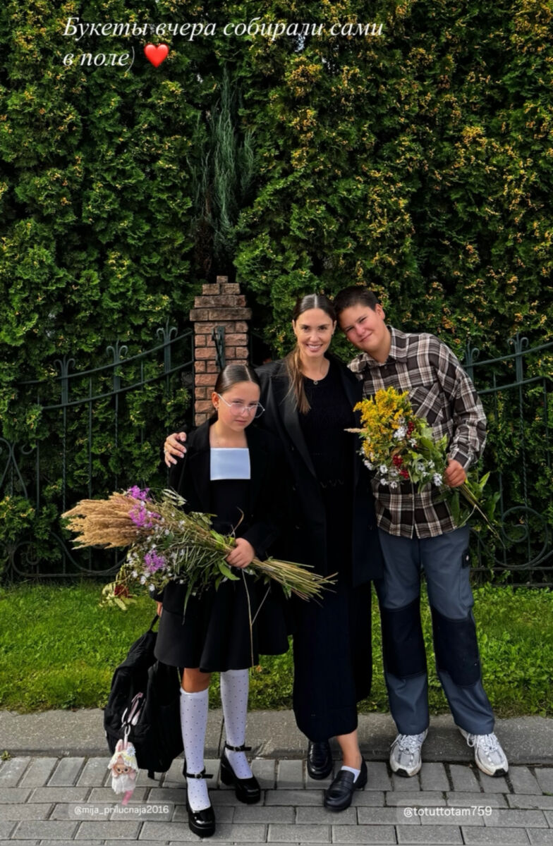 Похоже, что Агата наладила отношения со своим старшим сыном Тимофеем. Мальчик присутствовал на свадьбе матери, а также актриса проводила сына и дочь в школу. Интересно, что последний день лета они так же провели вместе, собирая букет для 1 сентября в поле. 9-летняя Мия позировала в школьной форме, а 12-летний Тимофей выбрал для себя более повседневный образ. Беременная Агата нарядилась в черное платье и оверсайз пиджак.
