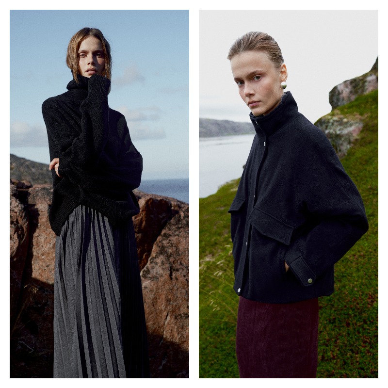Коллекция “Северный прибой” — это баланс между структурой и мягкостью, между классикой и внутренней свободой. Emka мягко переосмысливает силуэт: оверсайз уступает место приталенным линиям, а женственность обретает уверенность и архитектурность. Жакеты становятся стройнее, точнее, но при этом не теряют утонченной пластики.