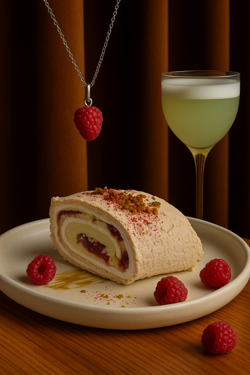 С 21 ноября новый бар «Апартаменты» запускает совместный проект с брендом украшений «Koshek». Гости бара получают авторский коктейль, меренговый рулет с фисташками и малиной и гиперреалистичная подвеска-малина.