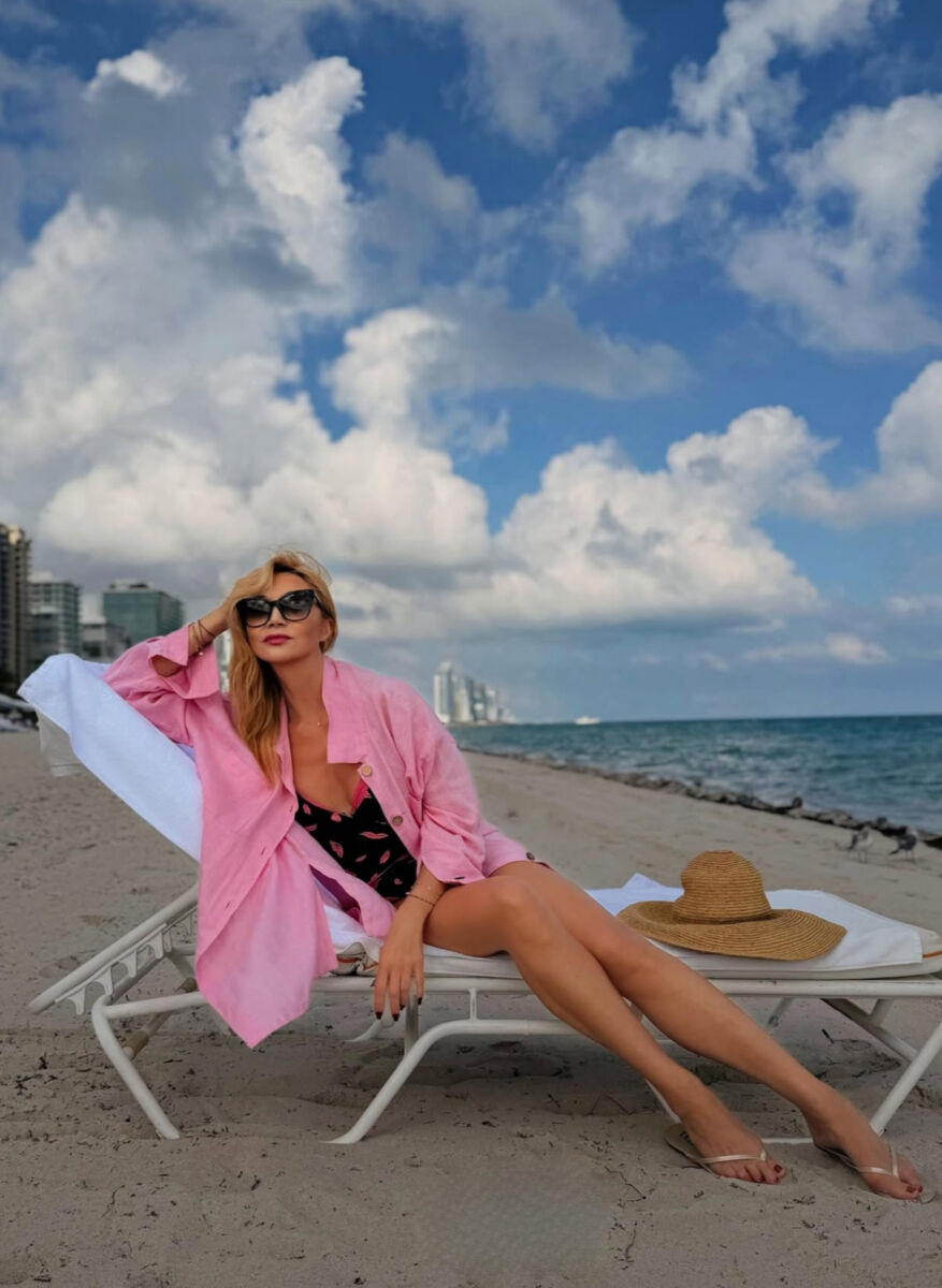 Кристина Орбакайте продемонстрировала великолепную фигуру, позировав в купальнике на пляже в Майами. 54-летняя певица, находящаяся в отличной физической форме, делится красочными снимками, вызывая восхищение и восторженные отзывы поклонников. Многие отметили, что у Орбакайте изящные длинные ноги. «Зима в Майами», — подписала она кадр. На снимке звезда предстала в черном слитном купальнике с принтом в виде розовых губ. Сверху Кристина накинула розовую льняную рубашку. В качестве аксессуаров женщина выбрала солнцезащитные очки и шляпу с большими полями.