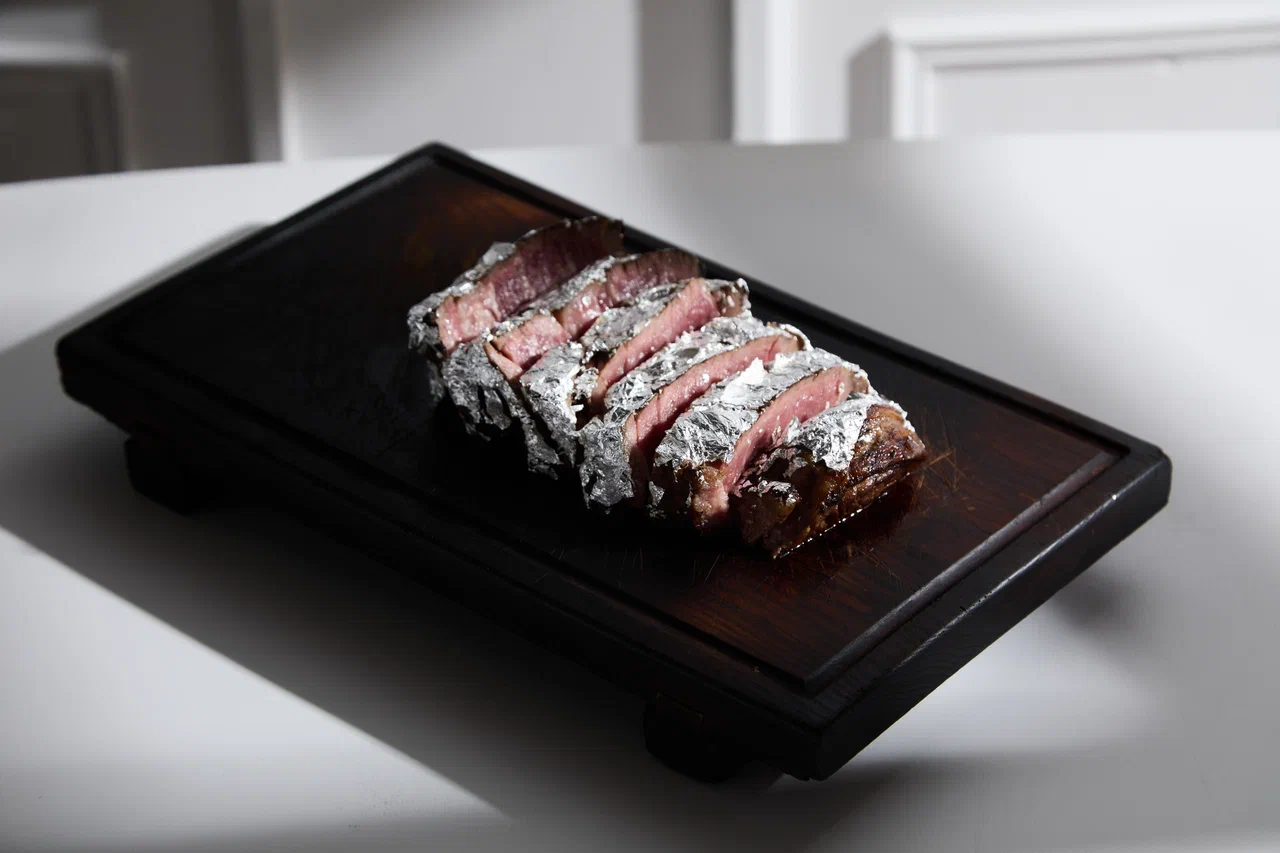 На время празднования в основном зале установят инсталляцию — платиновый стейк как символ брутальной мясной концепции и главного ингредиента. Он будет располагаться на постаменте и подсвечиваться софитами — не только для красоты, но и чтобы гости могли сделать качественные фотографии с идеально выставленным светом. Чтобы усилить визуальные впечатления, аналогичный стейк с пищевым серебром (9500 руб.) можно заказать в специальном меню.