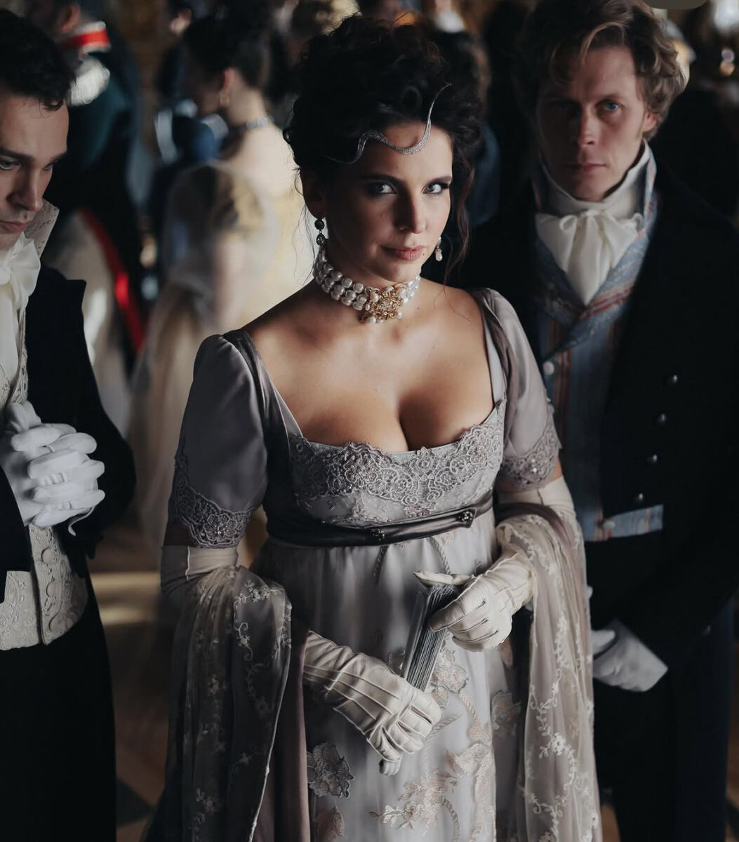 Режиссер сегодня решил приоткрыть завесу тайны и признался, что его супруга, 30-летняя актриса Лиза Моряк сыграет в фильме Элен Курагину. Он опубликовал несколько фотографий, где артистка находится в гриме. Сарик прокомментировал: «Сегодня я хочу поговорить об одной из самых сложных и недооценённых фигур в романе «Война и мир». О персонаже, которого часто сводят к роли «красивой куклы» или «коварной интриганки». Это Элен Курагина. Толстой писал о ней с леденящей, почти хирургической точностью: «Элен была так хороша, что не только не было в ней заметно и тени кокетства, а, напротив, ей как будто совестно было за свою несомненную и слишком сильно действующую красоту… Она ничего не говорила, вслушиваясь и оглядываясь, и только изредка взглядывала на своих собеседников тем блестящим взглядом, с которым смотрела на Пьера».
