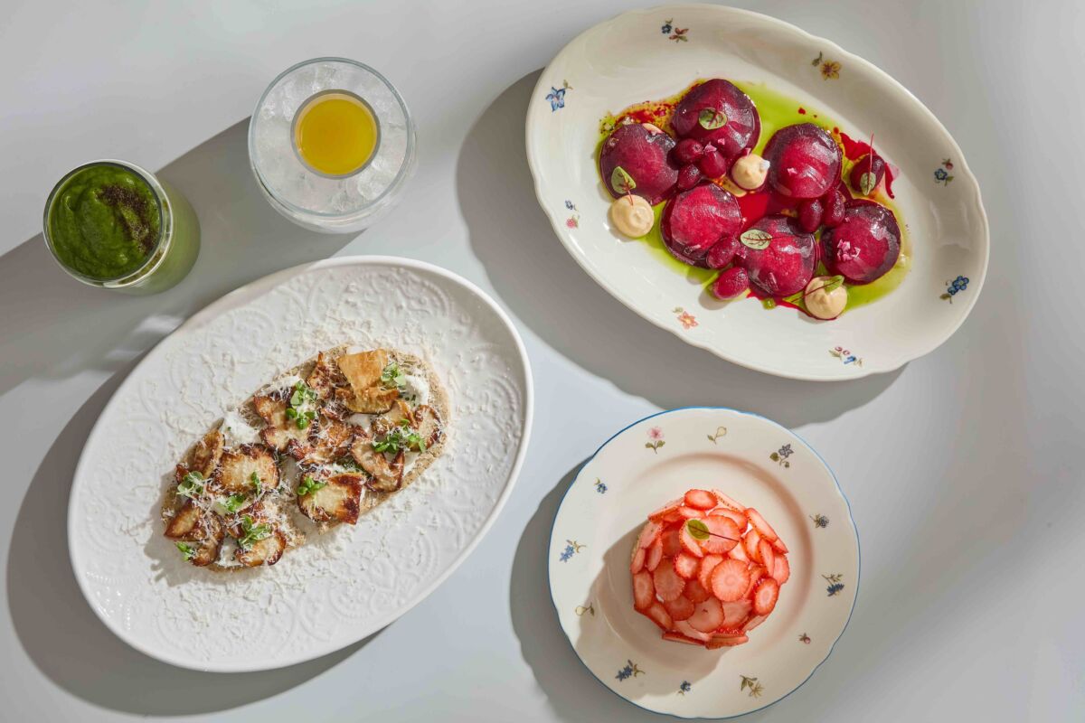 Гостям предлагают хрустящую безглютеновую лепешку с белыми грибами, приготовленную с клетчаткой конопли и псиллиумом; равиоли из свеклы с кремом из кешью и виноградом, заправленные свекольным фрешем; лингвини из тыквы с фенхелем, грейпфрутом и пчелиной пыльцой, заправленные медовым соусом с клетчаткой конопли; гребешок со спаржей и цитрусовым соусом, приготовленный с рыбным бульоном и маслом гхи; треску с лепестками миндаля и шпинатом, приготовленную на масле гхи; наггетсы в безглютеновой панировке из сорго с рисом и брокколи; десерт «Карамельный пекан» из безглютенового бисквита, карамельного ганаша, мусса, пасты из ореха пекан и шоколадного велюра без сахара; мармелад «мандаринки» на аллюлозе, безопасный для диабетиков и сторонников кетодиеты; миндальный бисквит без глютена с кокосовым кремом и свежей клубникой.