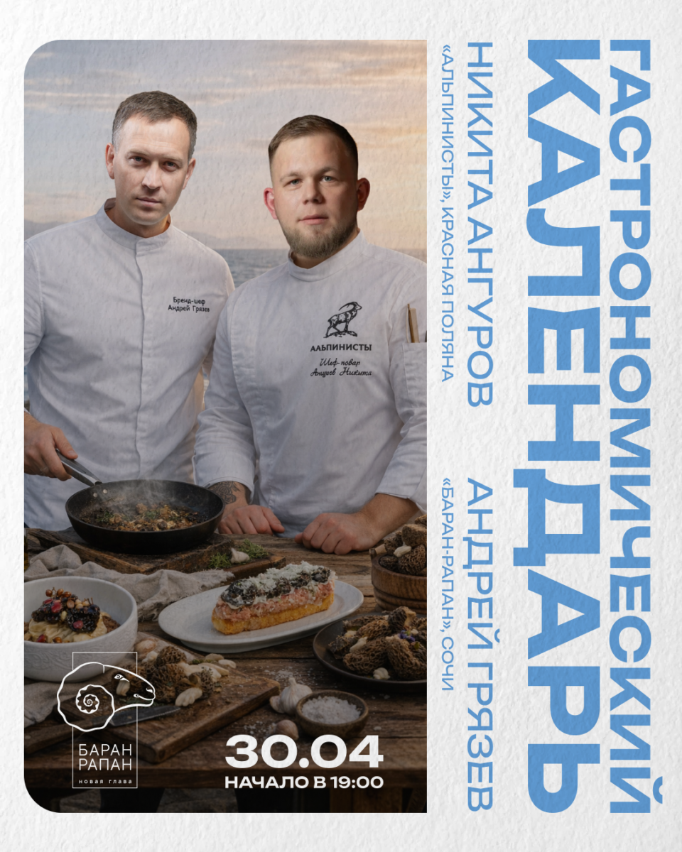 30 апреля в 19:00 в ресторане «Баран-Рапан» пройдет гастрономический ужин проекта «Гастрономический календарь», посвящённый локальным продуктам Юга России. В апреле главным героем ужина станет редкий и быстропроходящий продукт — сморчок, который ценится за сложность аромата и глубину вкуса.
