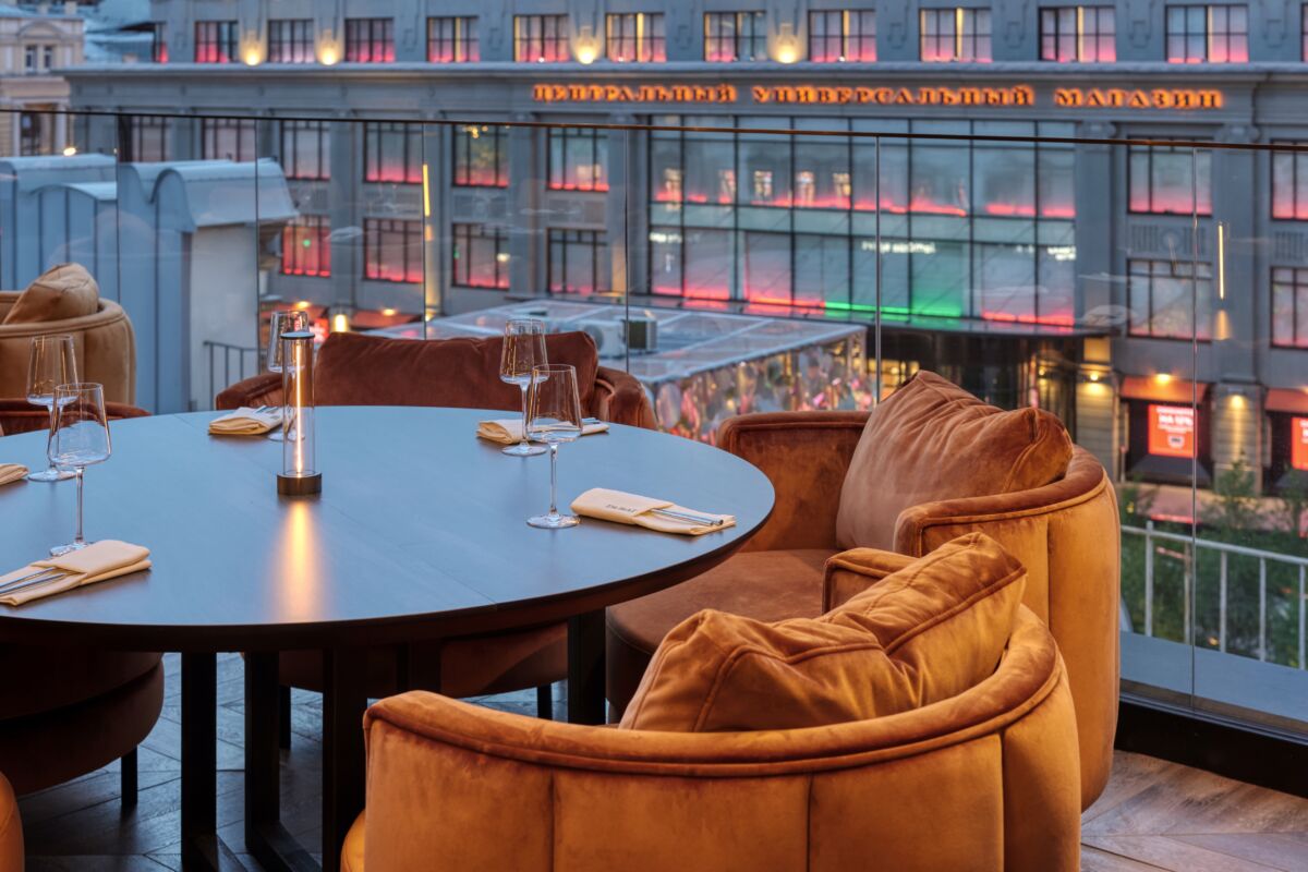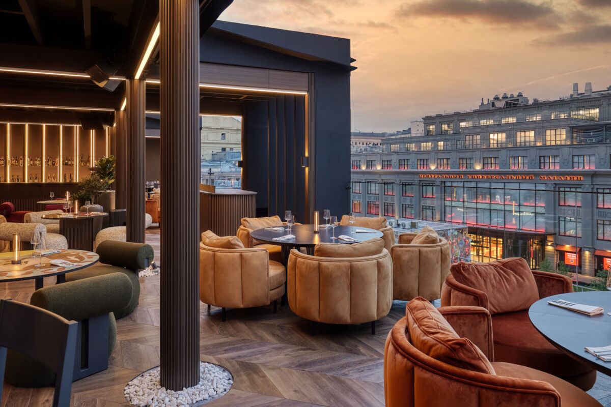 В конце апреля в ресторане ДУБАЙ на Кузнецком мосту откроется летняя веранда на крыше с панорамным видом на исторический район Москвы, включающий ЦУМ, Большой театр и окружающие улицы. Интерьер выполнен в теплых песочных оттенках, от светло-бежевого до насыщенной охры, с элегантными элементами в стиле лобби дорогих отелей. Контактный бар и арт-стена от граффити-художника Dima Slash создают атмосферу, напоминающую солнечные пески арабских пустынь.
